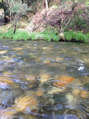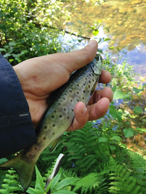 Ninguém sentiu um único toque nos momentos iniciais... apenas quando chegamos ao primeiro açude, que tive a tentar enganar uma truta...que ainda se fez a amostra umas 3 vezes!